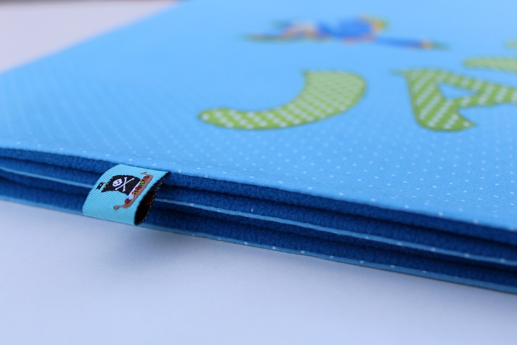 Personalisierte Decke für die Kleinsten. Ein sehr persönliches und individuelles Geschenk zur Geburt oder Taufe. Die Vorderseite aus fein gewebtem Baumwollstoff ziert eine Namensapplikation und ein niedliches Stickmotiv aus der "Piratenserie". Die Rückseite aus zartem Polyesterfleece lädt zum Kuscheln ein.