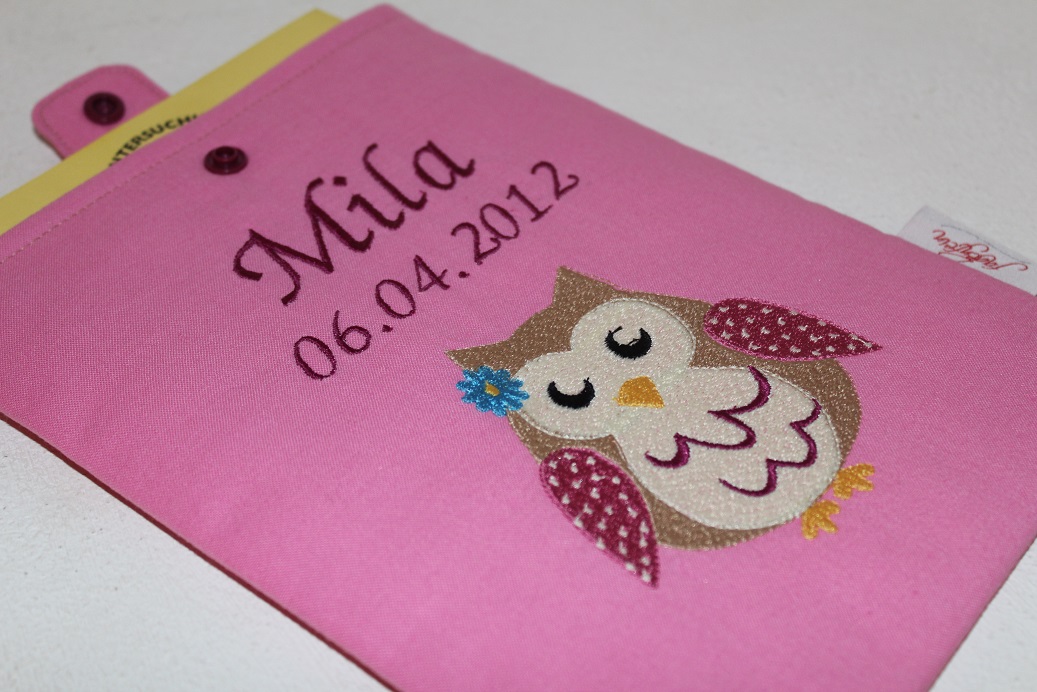 Ein sehr persönliches Geschenk ist diese individuell mit Namen und Geburtstag bestickte Schutzhülle für das gelbe Untersuchungsheft (U-Heft). Genäht aus Baumwollstoff mit Innenfutter und zusätzlichem Volumenvlies für mehr Stabilität, zu schließen mit einem Druckknopf. Das U-Heft wird einfach von oben eingeschoben.